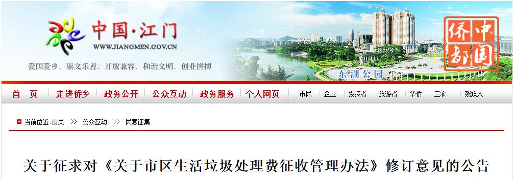 日前, 廣東江門(mén)市住建局發(fā)布了關(guān)于征求對(duì)《關(guān)于市區(qū)生活垃圾處理費(fèi)征收管理辦法》修訂意見(jiàn)的公告,詳情如下:江門(mén)市住房和城鄉(xiāng)建設(shè)局、江門(mén)市發(fā)展和改革局在2015年12月聯(lián)合印發(fā)的《市區(qū)生活垃圾處理費(fèi)征收管理辦法》(江建【2015】384)(以下簡(jiǎn)稱《管理辦法》),有效期臨近屆滿。根據(jù)《江門(mén)市行政機(jī)關(guān)規(guī)范...