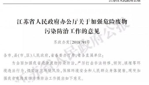 江蘇省人民政府辦公廳于近日發(fā)布了“關(guān)于加強(qiáng)危險(xiǎn)廢物污染防治工作的意見(jiàn)”,文件明確表示,對(duì)年產(chǎn)危險(xiǎn)廢物量500噸以上且當(dāng)年均未落實(shí)處置去向,以及累計(jì)貯存2000噸以上的化工企業(yè),督促企業(yè)限期整改,未按要求完成整改的,政府將依法依規(guī)予以處理;危險(xiǎn)廢物年產(chǎn)生量5000噸以上的企業(yè)必須自建利用處置設(shè)施。江蘇...