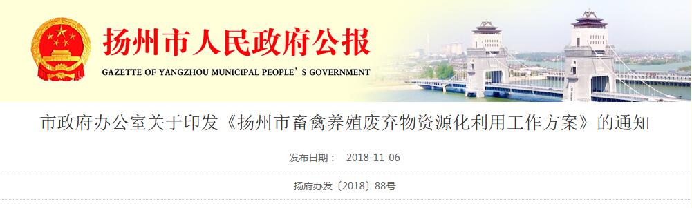 日前,揚(yáng)州市印發(fā)了《揚(yáng)州市畜禽養(yǎng)殖廢棄物資源化利用工作方案》,《方案》提出,到2019年,大型規(guī)模養(yǎng)殖場(chǎng)糞污處理設(shè)施裝備配套率達(dá)到100%;到2020年,建立科學(xué)規(guī)范、權(quán)責(zé)清晰、約束有力的畜禽養(yǎng)殖廢棄物資源化利用體系,構(gòu)建種養(yǎng)循環(huán)發(fā)展機(jī)制,全市畜禽糞污綜合利用率達(dá)到78%以上,規(guī)模養(yǎng)殖場(chǎng)糞污處理設(shè)施...