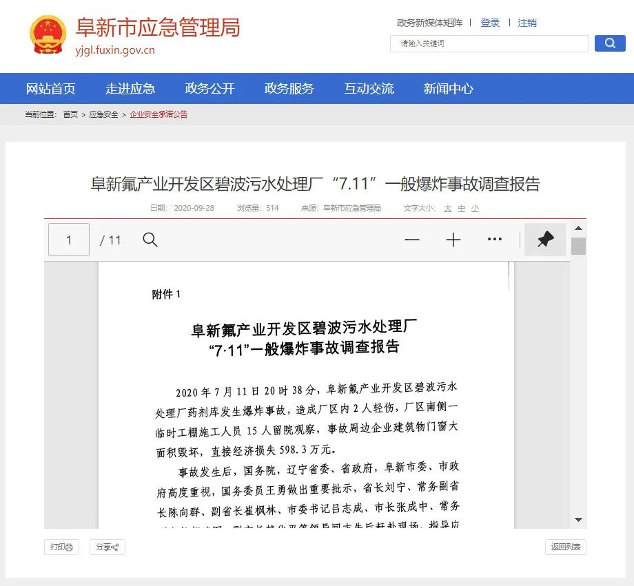 文章導(dǎo)讀近日,阜新市應(yīng)急管理局已經(jīng)發(fā)布了《阜新氟產(chǎn)業(yè)開發(fā)區(qū)碧波污水處理廠“7.11”一般爆炸事故調(diào)查報(bào)告》(下稱《報(bào)告》)。結(jié)果顯示,爆炸的直接原因是該污水廠違規(guī)使用氯酸鈉催化劑,在儲存時(shí)與赤砂糖發(fā)生化學(xué)反應(yīng)發(fā)生爆炸,爆炸現(xiàn)場形成的沖擊波相當(dāng)1.0-1.5tTNT當(dāng)量。還記得去年7月12日,遼寧省阜...