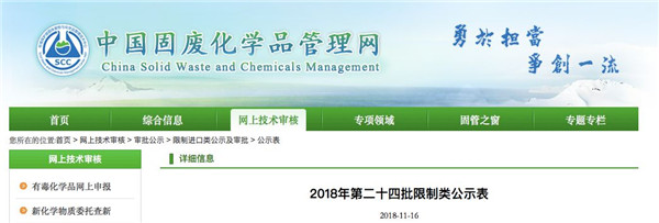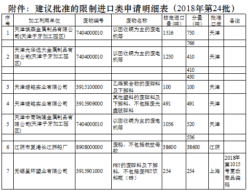 日前中國固廢化學(xué)品管理網(wǎng)發(fā)布了《建議批準的限制進口類申請明細表(2018年第24批)》,其中涉及30家企業(yè)具體內(nèi)容如下:
