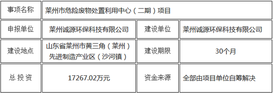 日前煙臺市發(fā)展和改革委員會發(fā)布了《關(guān)于萊州市危險廢物處理中心(一期)項目核準(zhǔn)前公示核準(zhǔn)前公示》,公示顯示該項目地址位于山東省萊州市黃三角(萊州)先進(jìn)制造產(chǎn)業(yè)區(qū)(沙河鎮(zhèn)),建設(shè)內(nèi)容包括罐區(qū)、固化暫存庫、綜合利用暫存庫、物化車間、綜合利用車間、固化車間(化驗室)、廢氣處理車間、污水處理站等。總投資105...