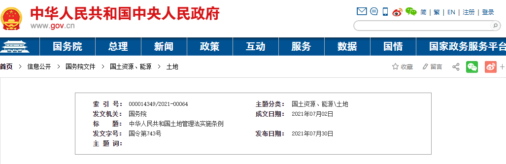 中華人民共和國國務(wù)院令第743號《中華人民共和國土地管理法實施條例》已經(jīng)2021年4月21日國務(wù)院第132次常務(wù)會議修訂通過,現(xiàn)予公布,自2021年9月1日起施行。 總理 李克強(qiáng)2021年7月2日中華人民共和國土地管理法實施條例(1998年12月27日中華人民共和國國務(wù)院令第256號發(fā)布 根據(jù)201...
