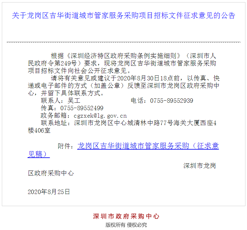 文章導讀2019年,深圳市政府計劃引進“城市管家”概念,在此背景下,“物管城市”模式開始浮出水面,基本思路為:統(tǒng)籌整合環(huán)境衛(wèi)生、綠化管養(yǎng)、市容管控、數(shù)字化城管等城市管理服務,委托專業(yè)的物管企業(yè)開展市政一體化運營,構(gòu)建“管理+服務+運營”的城市治理新模式。8月25日,深圳市政府采購中心發(fā)布“深圳市龍崗...