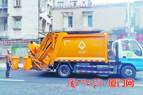 今年,廈門市要實現(xiàn)生活垃圾100%公交化直運。圖為“其他垃圾”收運車公交化收運垃圾。盡管天氣炎熱,但是,當人們靠近湖里區(qū)江頭街道溫莎公館垃圾投放點時,幾乎聞不到臭味,地面也見不到垃圾?!岸〞r定點”分類投放垃圾,不僅進一步改善了小區(qū)的人居環(huán)境,同時,也提升了人們的衛(wèi)生意識、家園意識。全市加快建設高顏值...