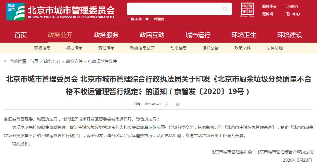 文章導(dǎo)讀為規(guī)范廚余垃圾收集運(yùn)輸管理,促進(jìn)生活垃圾分類管理責(zé)任人和收集運(yùn)輸單位依法履行垃圾分類義務(wù),依據(jù)《北京市生活垃圾管理?xiàng)l例》,制定《北京市廚余垃圾分類質(zhì)量不合格不收運(yùn)管理暫行規(guī)定》。為規(guī)范廚余垃圾收集運(yùn)輸管理,促進(jìn)生活垃圾分類管理責(zé)任人和收集運(yùn)輸單位依法履行垃圾分類義務(wù),北京市城市管理委員會(huì) 北...