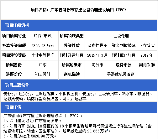 中項網(wǎng)獨家授權(quán)北極星固廢網(wǎng)發(fā)布最新垃圾處理項目(2019年3月18日更新),其中包括垃圾填埋場項目、城鄉(xiāng)一體化垃圾處理轉(zhuǎn)運站項目等垃圾處理項目。具體內(nèi)容如下: