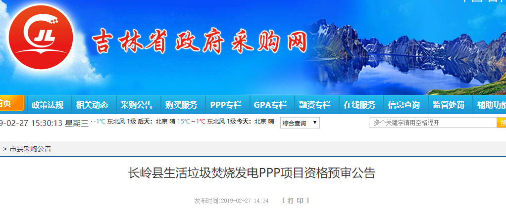 中國環(huán)聯(lián)網(wǎng)獲悉,2月27日,吉林省長嶺縣生活垃圾焚燒發(fā)電PPP項(xiàng)目發(fā)布資格預(yù)審公告。據(jù)悉,項(xiàng)目概況如下:(一)項(xiàng)目建設(shè)內(nèi)容長嶺縣生活垃圾焚燒發(fā)電項(xiàng)目該項(xiàng)目由長嶺縣城市開發(fā)辦公室發(fā)起,總建設(shè)規(guī)模為日處理生活垃圾500噸/日,配一臺(tái)7.5MW純凝汽式汽輪發(fā)電機(jī),項(xiàng)目年處理生活垃圾18.25萬噸。項(xiàng)目采用...