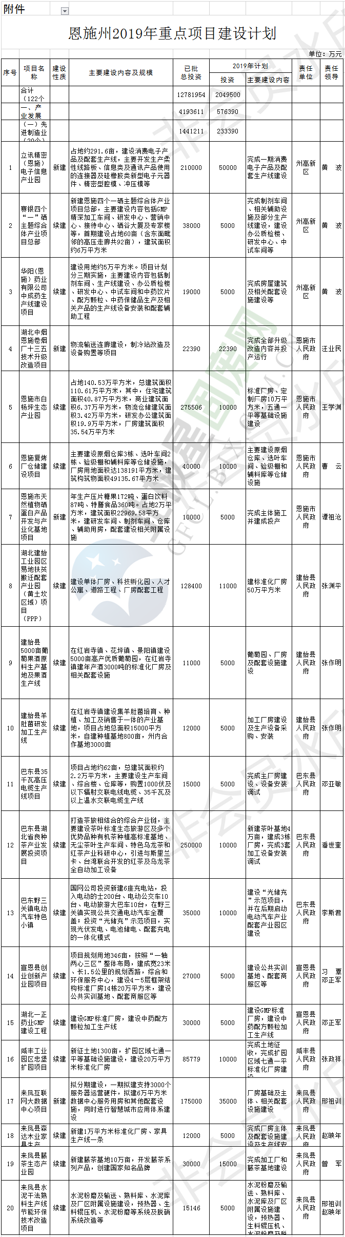 近日,湖北恩施州政府印發(fā)《恩施州2019年重點(diǎn)項(xiàng)目建設(shè)計(jì)劃》,安排重點(diǎn)項(xiàng)目共122個(gè)。其中產(chǎn)業(yè)發(fā)展類46個(gè),基礎(chǔ)設(shè)施類44個(gè),生態(tài)保護(hù)類11個(gè),社會(huì)民生類21個(gè)。生態(tài)保護(hù)類項(xiàng)目涉及兩個(gè)垃圾焚燒發(fā)電項(xiàng)目和多個(gè)污水處理廠項(xiàng)目等。項(xiàng)目信息如下:高新區(qū)響水壩工業(yè)污水處理廠項(xiàng)目(新建)項(xiàng)目規(guī)劃總用地面積約36...