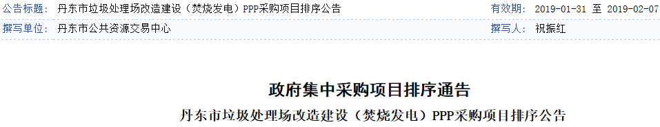 中國(guó)環(huán)聯(lián)網(wǎng)獲悉,1月31日,丹東市垃圾處理場(chǎng)改造建設(shè)(焚燒發(fā)電)PPP采購(gòu)項(xiàng)目發(fā)布排序公告,第一候選社會(huì)資本為上海電氣集團(tuán)股份有限公司,垃圾焚燒處理服務(wù)價(jià)格42.13元/噸;第二候選社會(huì)資本為重慶三峰環(huán)境集團(tuán)股份有限公司,垃圾焚燒處理服務(wù)價(jià)格42.20元/噸。12月11日,該項(xiàng)目發(fā)布資格預(yù)審結(jié)果公告...