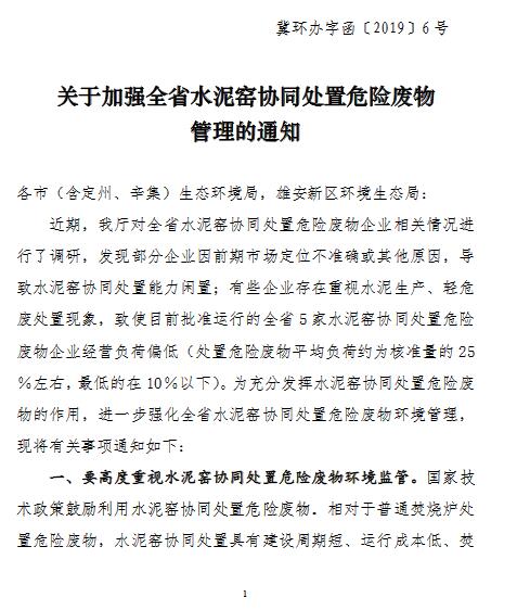 近日,河北省生態(tài)環(huán)境廳辦公室發(fā)布了關(guān)于加強全省水泥窯協(xié)同處置危險廢物管理的通知,對水泥窯協(xié)同處置危險廢物環(huán)境管理做出明確指示,詳情如下:延伸閱讀:貴州:加快發(fā)展垃圾發(fā)電 推廣水泥窯協(xié)同處置城市垃圾(附重點任務(wù))