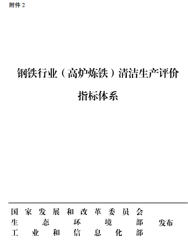 日前,國家發(fā)改委、生態(tài)環(huán)境部、工信部聯(lián)合印發(fā)了鋼鐵行業(yè)(高爐煉鐵)清潔生產(chǎn)評價指標(biāo)體系,規(guī)定了在高爐煉鐵工藝中有關(guān)大氣污染物的排放指標(biāo),包括顆粒物、二氧化硫、氮氧化物,其中高爐環(huán)境除塵及礦槽除塵配備有齊全的除塵裝置,確保無可見煙粉塵外逸。全文如下: