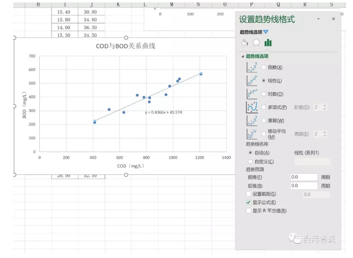 Y=0.4366X+45.574,換成BOD和COD的關(guān)系就是:
