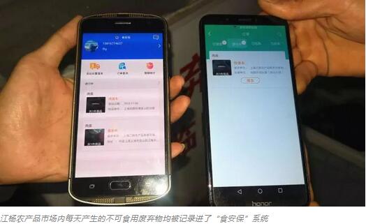 江楊農(nóng)產(chǎn)品市場內(nèi)每天產(chǎn)生的不可食用廢棄物會被記錄進了“食安?!毕到y(tǒng),市場管理者向收運方發(fā)送請求;