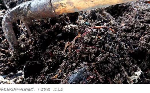 有時候,哪怕濕垃圾里混雜著大量干垃圾,蚯蚓也照吃不誤,它們在進食時會避開干垃圾,只吃腐殖質(zhì),最終蚯蚓田里的干垃圾一目了然,相當于一臺垃圾自動分揀機。