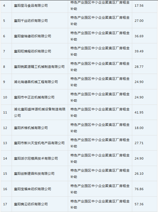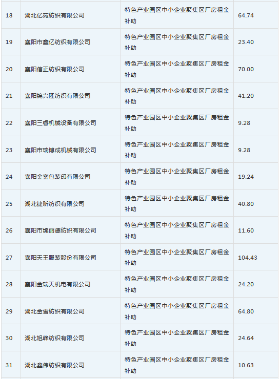 經(jīng)襄陽市政府批準(zhǔn),市經(jīng)信委組織開展了2018年《加快建設(shè)萬億工業(yè)強(qiáng)市十條措施》等相關(guān)政策兌現(xiàn)工作。經(jīng)組織申報(bào)、縣(市、區(qū))初審呈報(bào)、責(zé)任科室要件審查、專家評(píng)審、第三方機(jī)構(gòu)現(xiàn)場審計(jì)核查、督查復(fù)核、會(huì)商測算、黨組研究、市政府審定等程序,擬按政策對(duì)232家企業(yè)(單位)進(jìn)行補(bǔ)助或獎(jiǎng)勵(lì),現(xiàn)予以公示。公示期為2018年12月1日至2018年12月7日,如有異議請及時(shí)將相關(guān)情況反映至市經(jīng)信委,反映情況要實(shí)事求是,真實(shí)有據(jù),并提供聯(lián)系方式以便反饋。