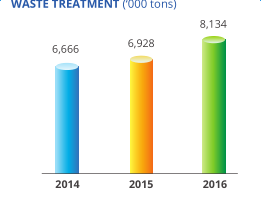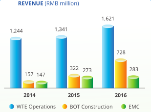 截止2016年12月底,公司已在中國的12個省、自治區(qū)額直轄市已運(yùn)行了19家垃圾焚燒發(fā)電廠,運(yùn)營日處理垃圾能力總計27430噸,裝機(jī)容量達(dá)469MW。2016年垃圾處理量增加17.4%達(dá)到813噸,實現(xiàn)了2016年稅前利潤和稅后利潤分別達(dá)到29.0%和32.3%的高增長,2016年實現(xiàn)歸屬股東的凈利潤為5.98億元,同比增長34.7%。