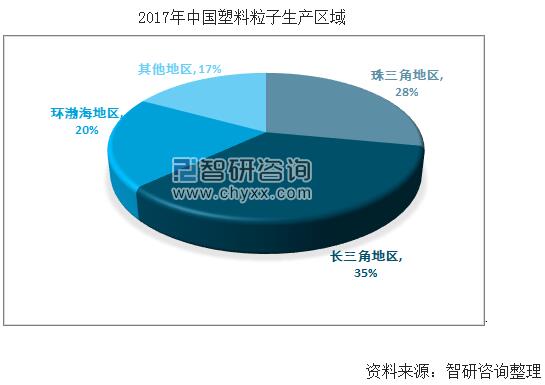 2017年我國(guó)塑料粒子生產(chǎn)區(qū)域主要分布在廣東、江浙等幾個(gè)省市。形成了以珠三角、長(zhǎng)三角、環(huán)渤海衛(wèi)中心的生產(chǎn)基地。2017年我國(guó)塑料粒子生產(chǎn)企業(yè)分布如下圖所示: