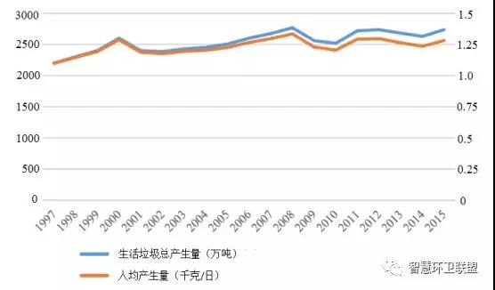 圖2. 芬蘭生活垃圾產(chǎn)生量及人均產(chǎn)生量的變化趨勢(shì)