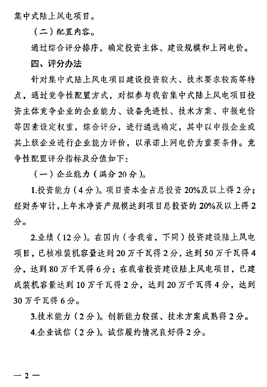 近日,廣東省能源局正式印發(fā)《海上風(fēng)電及陸上風(fēng)電競爭配置辦法(試行)》,該辦法為全國首份風(fēng)電“競價”細(xì)則標(biāo)準(zhǔn),對其他省份競價方案的落地起到了一定的借鑒和引導(dǎo)作用,辦法明確以企業(yè)能力、設(shè)備先進(jìn)性、技術(shù)方案、已開展前期工作、接入消納條件、申報電價七大要素為標(biāo)準(zhǔn)進(jìn)行“競價”。