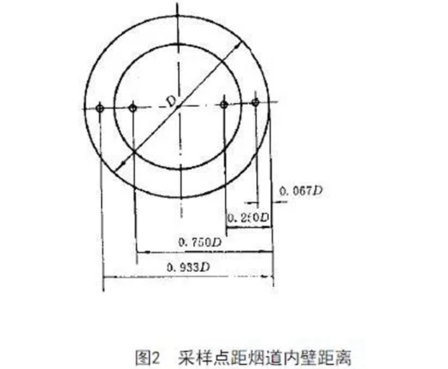 5.2.2 對(duì)圓形煙道,采樣孔應(yīng)設(shè)在包括各測(cè)點(diǎn)在內(nèi)的互相垂直的直徑線上。對(duì)矩形或方形煙道,采樣孔應(yīng)設(shè)在包括各測(cè)點(diǎn)在內(nèi)的延長(zhǎng)線上。