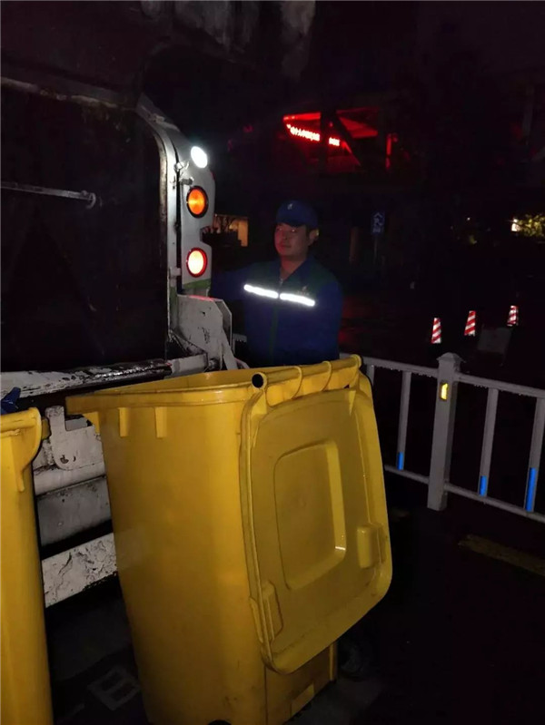 龔磊作業(yè)的線路要收運(yùn)三車?yán)?,為了減少對居民的打擾,第一、第二車線路安排在錢江新城寫字樓作業(yè)。3點(diǎn)半,龔磊、龔縵琴在市民街開始第一個(gè)作業(yè)點(diǎn)的垃圾收運(yùn)。