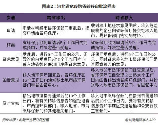 危廢產(chǎn)生量和工業(yè)發(fā)達(dá)程度緊密相關(guān),目前全國危險(xiǎn)廢物經(jīng)營許可證數(shù)量集中于長三角和珠三角區(qū)域,危廢處理處臵的區(qū)域性比較明顯,且我國對于跨省轉(zhuǎn)移危廢有非常嚴(yán)格的限制措施與程序,進(jìn)一步加強(qiáng)了危廢處理的區(qū)域性,導(dǎo)致產(chǎn)能不匹配問題不能通過危廢轉(zhuǎn)移來解決。以河北省為例,危險(xiǎn)廢物轉(zhuǎn)移需要五個審批步驟,同時經(jīng)過省級和市縣級相關(guān)部門同意才可進(jìn)行轉(zhuǎn)移。
