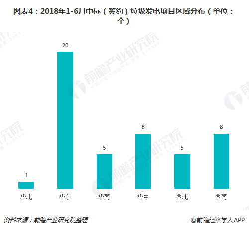 分區(qū)域來看,今年上半年新簽項目主要落在山東、浙江為代表的華東區(qū)域,生活垃圾焚燒發(fā)電項目約有20個;其次是以河南、湖北為代表的華中區(qū)域,以貴州為代表的西南區(qū)域,各有8個項目。