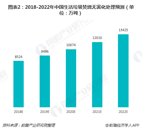 垃圾處理是現(xiàn)代社會人類生活的剛性需求,垃圾是否得到清潔化處理,是現(xiàn)代文明的重要標(biāo)志。雖然生活垃圾產(chǎn)生量逐年增加,但隨著垃圾焚燒技術(shù)的不斷提升,生活垃圾的無害化處理率也在逐年提高。2018年,城市生活垃圾焚燒無害化處理量預(yù)計達8524萬噸,到2022年將超過13000萬噸。