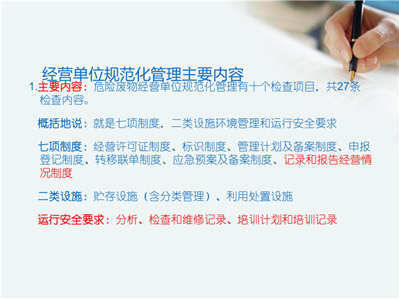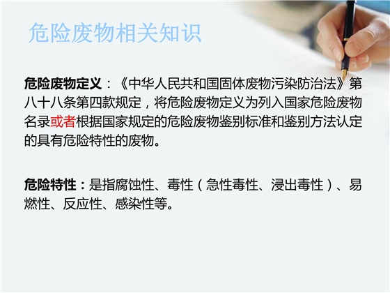 2018年石家莊市固體廢物管理培訓(xùn)會議課件日前公布,其中,“危險廢物法律法規(guī)和標準規(guī)范”共108張PPT,從固體廢物相關(guān)知識、我國危險廢物的主要法律制度、危險廢物規(guī)范化管理指標體系、2018年度危險廢物規(guī)范化管理督查考核四方面進行了詳細闡述。詳情如下: