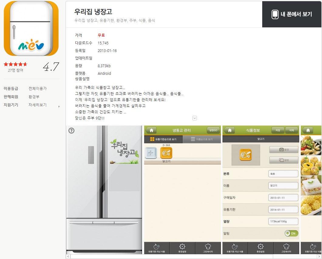 韓國環(huán)境部推出的手機應用“我們家的冰箱”