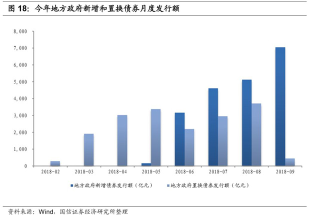 由于大多數(shù)地區(qū)于 5 月才通過本年預(yù)算調(diào)整方案并最終確定一般債和專項債的限額,因此上半年發(fā)行的地方政府債券主要是置換債券,新增債券從5月份才開始發(fā)行。結(jié)合專項債券的月度發(fā)行情況,截至到9月底新增專項債券可能已經(jīng)發(fā)行了1.49萬億,年度1.35萬億的計劃或可超額完成。