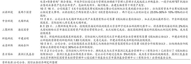 變化三:今年出現(xiàn)了“國資”大手筆進(jìn)軍民營上市企業(yè)的現(xiàn)象,環(huán)保領(lǐng)域這樣的現(xiàn)象尤為突。國企介入,提供強力的資金支持,嫁接資源,減少企業(yè)發(fā)展的不確定性和風(fēng)險;但同時企業(yè)活力、管理層穩(wěn)定性也受到一定的影響。