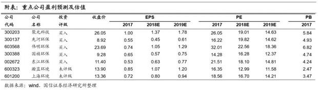 多重政策催動下,民企資金情況得到破冰,環(huán)保工程類公司邊際改善,大規(guī)模的資金落地可能要等到2019年一季度之后,同時PPP條例的出臺和地方環(huán)保專項債的發(fā)行也是PPP板塊的催化因素。市場對于PPP情緒的修復(fù)有望帶來工程板塊的率先反彈,這個階段看好體量小、項目質(zhì)量高的工程類個股,有望受具體項目資金落地影響展現(xiàn)出高彈性,建議重點關(guān)注國禎環(huán)保。