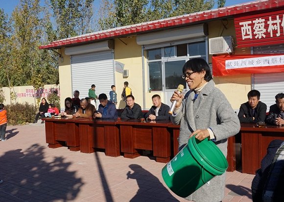 西蔡村的垃圾分類最終在2018年10月27號(hào)正式啟動(dòng)。村里人幾乎都來(lái)了,六十多歲的村支書(shū)在啟動(dòng)儀式上宣布:“今天我村啟動(dòng)垃圾分類,將西蔡村治理擴(kuò)展到資源循環(huán)利用的層面,踐行習(xí)近平主席建設(shè)生態(tài)文明、振興鄉(xiāng)村的偉大戰(zhàn)略!” 縣農(nóng)工委、城管局、桑德公司和西城鄉(xiāng)政府都來(lái)了代表。西城鄉(xiāng)鄉(xiāng)長(zhǎng)說(shuō): “參加過(guò)大大小小各種儀式,垃圾分類啟動(dòng)儀式是第一次見(jiàn)?!?p style="TEXT-ALIGN: center">