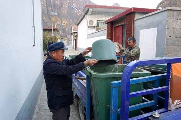 2018年10月24日,河北省保定市淶水縣南峪村,清潔人員正挨家挨戶進(jìn)行垃圾收運(yùn)。攝影:王學(xué)琛