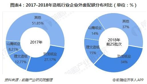 而從外廢配額的企業(yè)分布來(lái)看,有向龍頭企業(yè)集中的趨勢(shì)。2018年前25批次外廢配額中玖龍紙業(yè)、理文造紙、山鷹紙業(yè)三家廢紙系龍頭獲得配額占比達(dá)63%,較2017年的48%有明顯提升。長(zhǎng)期來(lái)看,外廢進(jìn)口清零大勢(shì)所趨,各企業(yè)也通過(guò)尋求替代原料的方式來(lái)解決這一問(wèn)題。而龍頭企業(yè)依靠資金優(yōu)勢(shì)和前瞻性的布局,在原料端布局深厚,并且通過(guò)海外產(chǎn)能建設(shè)來(lái)獲得原料供應(yīng),具備比較優(yōu)勢(shì)。