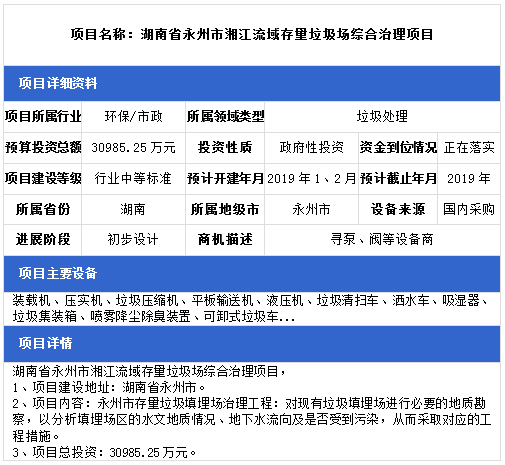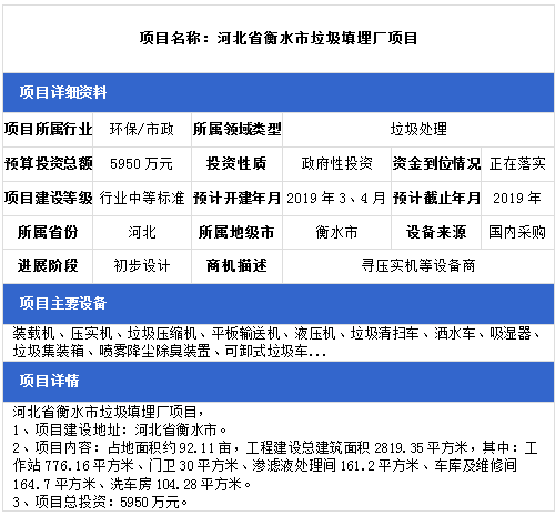中項網(wǎng)獨家授權(quán)北極星固廢網(wǎng)發(fā)布最新垃圾處理項目(2018年12月18日更新),其中包括生活垃圾無害化處理設(shè)置建設(shè)項目、農(nóng)村生活垃圾治理項目、生活垃圾衛(wèi)生填埋場項目等。具體內(nèi)容如下: