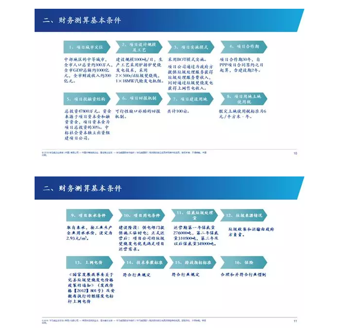 《報(bào)告》假設(shè),模擬項(xiàng)目位于中部地區(qū)的中等城市,全市人口總量約300萬(wàn)人,全市GDP總額約1000億元,全市財(cái)政收入約200億元。項(xiàng)目建設(shè)規(guī)模1000噸/日,生產(chǎn)工藝采用爐排爐焚燒發(fā)電技術(shù),采用2×500t/d垃圾焚燒線,1×18MW汽輪發(fā)電機(jī)組。