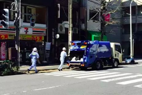 是的,在日本,真正環(huán)衛(wèi)工人只負(fù)責(zé)將一袋袋分類好的垃圾袋裝車帶走處理即可。