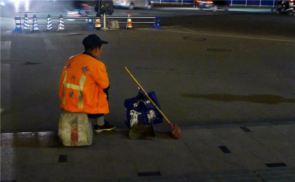 這位環(huán)衛(wèi)工人已經(jīng)連續(xù)工作8個(gè)小時(shí)