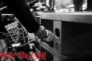 因周圍無垃圾桶,市民將垃圾暫放在自行車車籃內(nèi)。