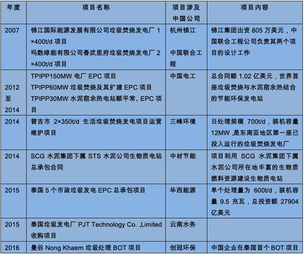 垃圾發(fā)電是中泰兩國清潔能源合作的一個(gè)重要方向。目前已有杭州錦江、中國聯(lián)合工程、中國電工、三峰環(huán)境、中材節(jié)能、華西能源、云南水務(wù),以及創(chuàng)冠環(huán)保等中國企業(yè),通過投資收購、工程承包、運(yùn)營維護(hù)等方式參與泰國的垃圾發(fā)電合作。