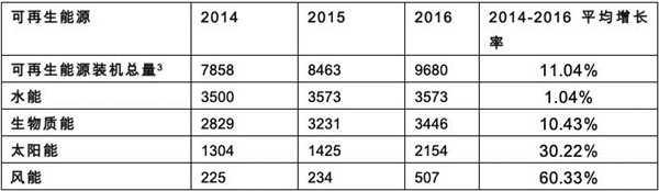 表2:越南2014-2016年可再生能源裝機(jī)容量(單位:兆瓦)