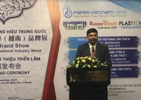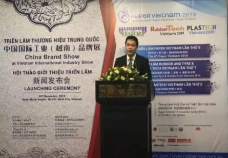 “中國國際工業(yè)(越南)品牌展”由中華人民共和國商務(wù)部主辦,中華人民共和國商務(wù)部外貿(mào)發(fā)展事務(wù)局承辦,中國化工信息中心協(xié)辦。商務(wù)部外貿(mào)發(fā)展局國際展覽處處長苗華偉先生出席發(fā)布會并致歡迎辭,中國化工信息中心副主任揭玉斌先生出席發(fā)布會并致開幕詞,越南工業(yè)和貿(mào)易部、越南紙漿及造紙工業(yè)協(xié)會、越南橡膠協(xié)會、胡志明橡塑工業(yè)生產(chǎn)商協(xié)會領(lǐng)導(dǎo)受邀出席會議并發(fā)言,近160位展商代表及媒體朋友出席發(fā)布會活動。