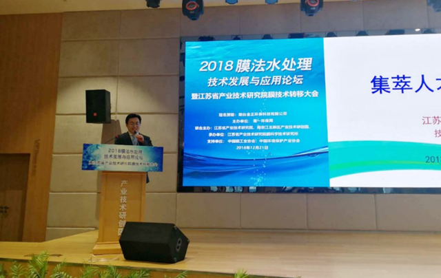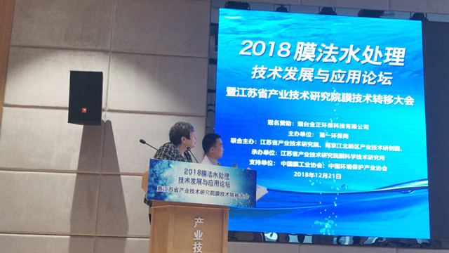 2018年12月21日,由第一環(huán)保網主辦,江蘇省產業(yè)研究院、南京江北新區(qū)產業(yè)技術研究園聯(lián)合主辦,江蘇省產業(yè)技術研究院膜科學技術研究所承辦,中國膜工業(yè)協(xié)會、中國環(huán)境保護產業(yè)協(xié)會共同支持,煙臺金正環(huán)??萍加邢薰惊毤屹澲?ldquo;2018膜法水處理技術發(fā)展與應用論壇暨江蘇省產業(yè)技術研究院膜技術轉移大會”在江蘇省南京市江北新區(qū)產業(yè)技術研創(chuàng)園騰飛大廈盛大召開。