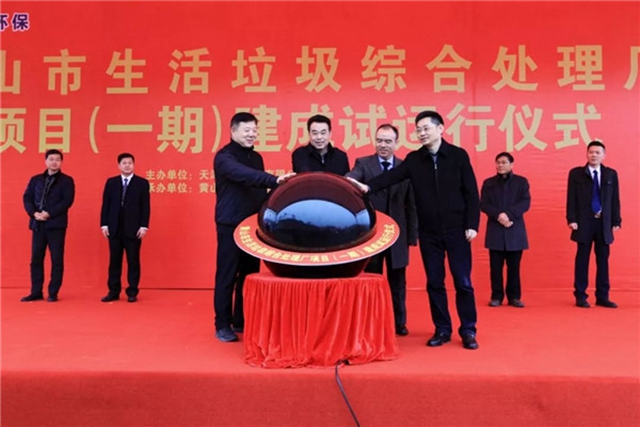 黃山市市委副書記、市長孔曉宏出席儀式并宣布該項目試運行。黃山市副市長楊龍,市政府秘書長洪建春,天津泰達股份有限公司黨委書記、董事長胡軍,中國中鐵四局黨委書記、董事長張河川,黃山市有關(guān)領(lǐng)導(dǎo),黃山泰達環(huán)保有限公司、中鐵四局建設(shè)者代表,當(dāng)?shù)厝罕姶砉?00余人參加了啟動儀式。