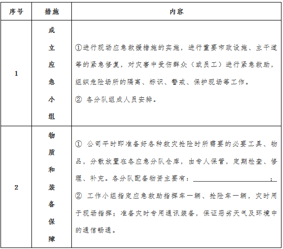 2、應(yīng)急組織保證及物資保障