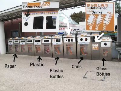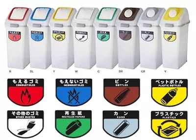 根據(jù)日本的垃圾分類法律,除了分為可燃和不可燃垃圾外,資源性垃圾還細(xì)分為塑料、紙張、舊報紙雜志、舊衣服、塑料飲料瓶、聽裝飲料瓶等等。另外,換電視、冰箱等家電還必須和收購商之類的專人聯(lián)系,并支付一定費用。大件的垃圾每年只能最多扔4件,否則需要另外付錢。