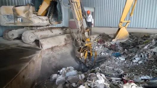 在徐匯區(qū)東南角的景聯(lián)路上,記者找到了這套流水線。整個(gè)徐匯區(qū)的裝修垃圾通過清運(yùn)車輛運(yùn)輸?shù)竭@里,并被分批倒入一個(gè)大型“漏斗”內(nèi),“漏斗”一側(cè)有一個(gè)由數(shù)排齒輪組成的“嘴巴”,各種種類、形狀的裝修垃圾經(jīng)過這只“嘴巴”的初步篩選,體積較小的掉入漏斗下方的自動分揀室。